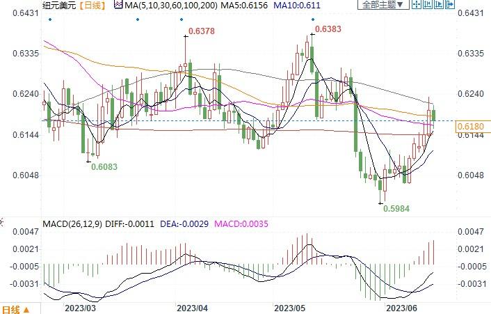 纽元兑好意思元日线图北京时间6月15日13:30,纽元兑好意思元报0.6186/88