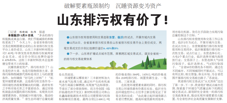 内行日报2022年12月22日2版刊发的音书《山东排污权有价了!》,欧博代理注册由中国政法大学光明新闻传播学院保举。