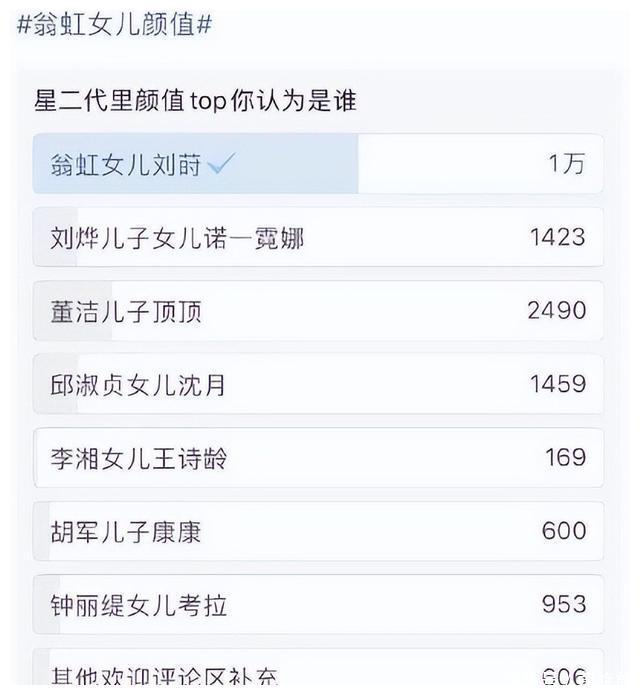 在客岁网友评比的“最好意思星二代”中,刘莳以一万票的收货荣居榜首,翁虹还专门发文道喜。